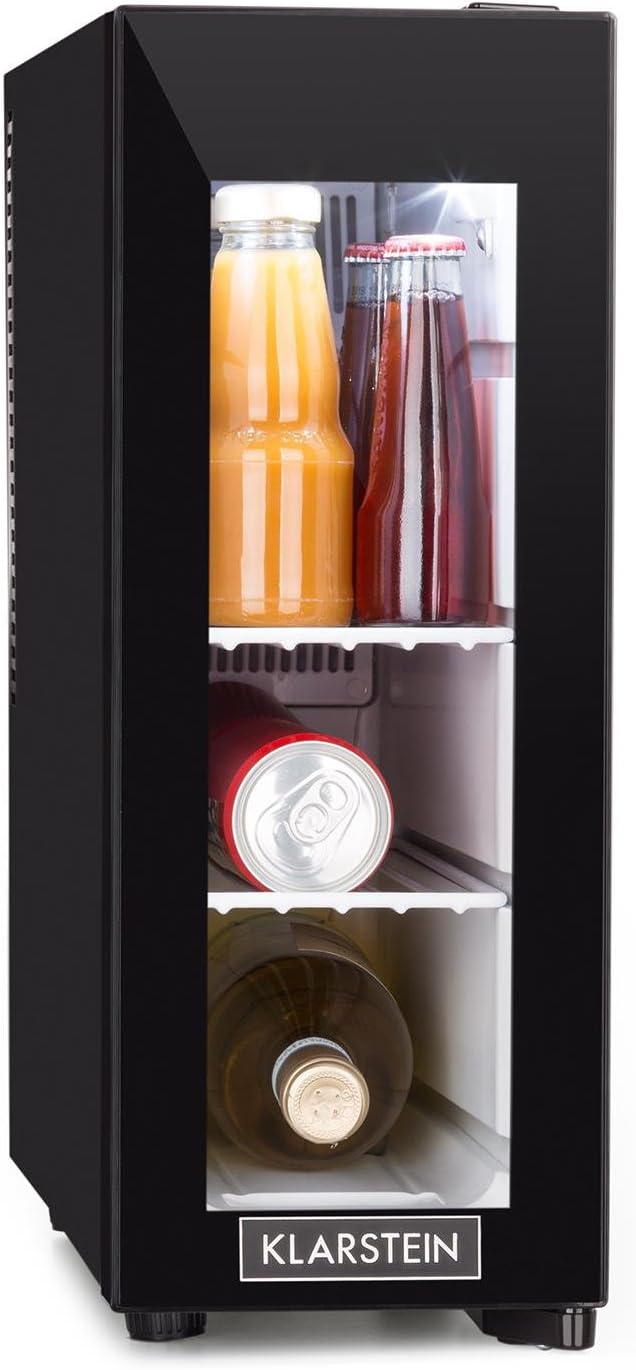 Klarstein Frosty 13L - cave à vin, réfrigérateur à boisson, réfrigérateur à médicaments, 13 litres, 3 étagères, 120 watts, très silencieux, température 8 à 18°C, noir [Classe énergétique A]