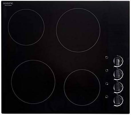 OCEANIC OCEATV4ZMA2 Table vitrocéramique Ne livre ni la Corse ni Monaco › Table de cuisson vitrocéramique - Largeur 59 cm - 4 foyers - Puissance totale 6000 W - Manettes électroniques - 2 foyers 1800 W - 2 foyers 1200 W - Coloris noir - Garantie 2 ans pieces main d'oeuvre et déplacement